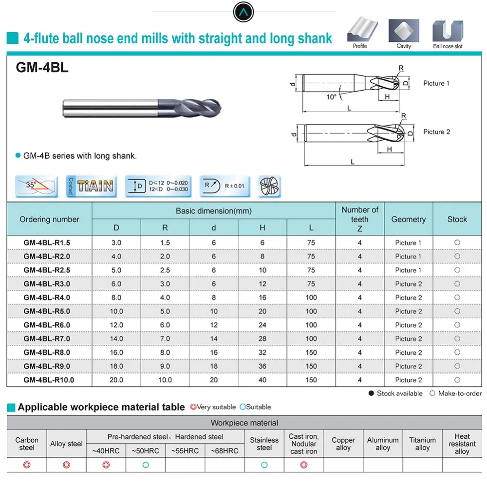 Gm 4bl R6 0 R7 0 Cemented Carbide Higher Feed Speed Machining Efficiency 4 Flute Ball Nose End Mills With Straight Shank Tools End Mills Ball Nose End Millsball Nose Aliexpress